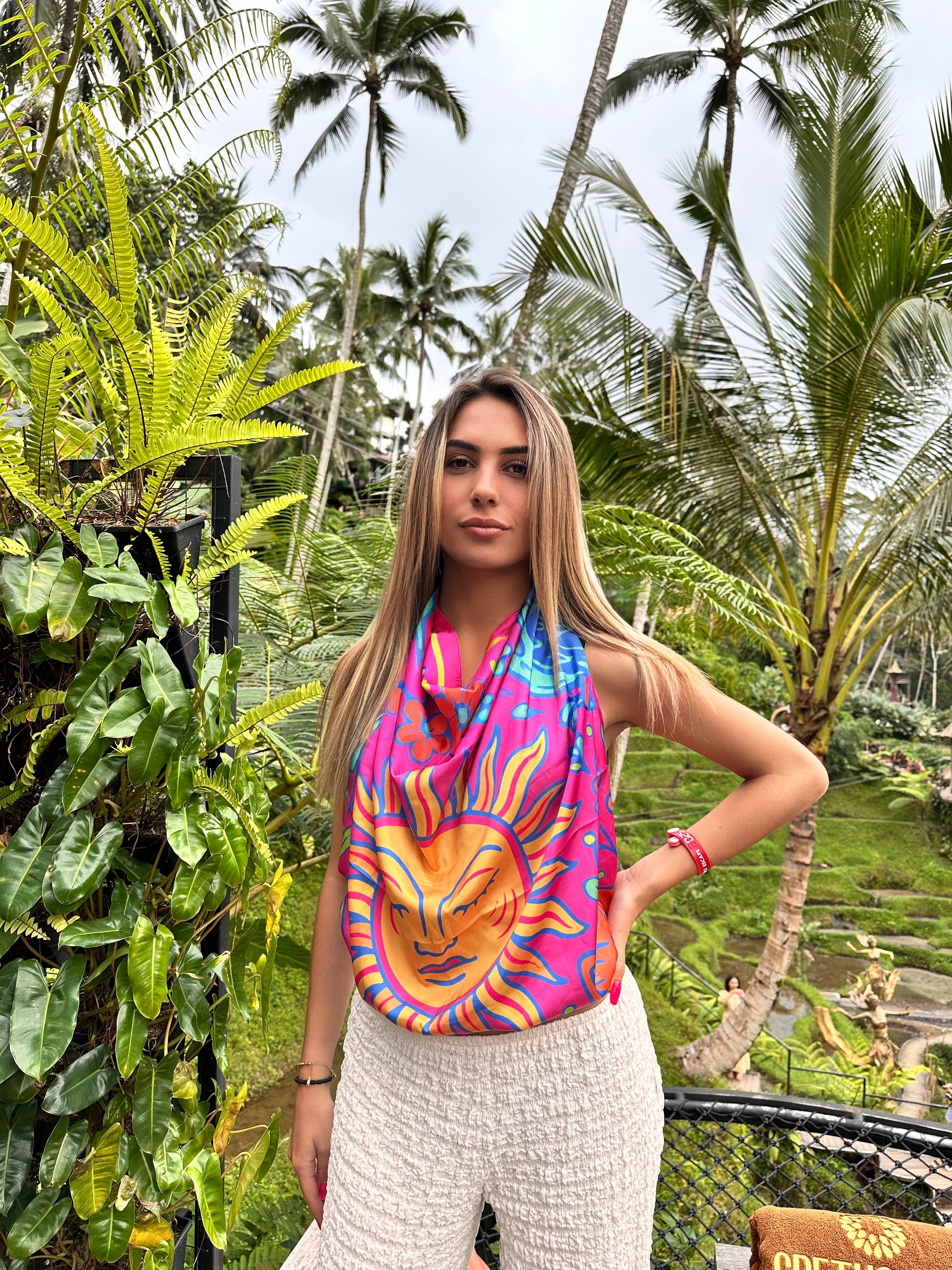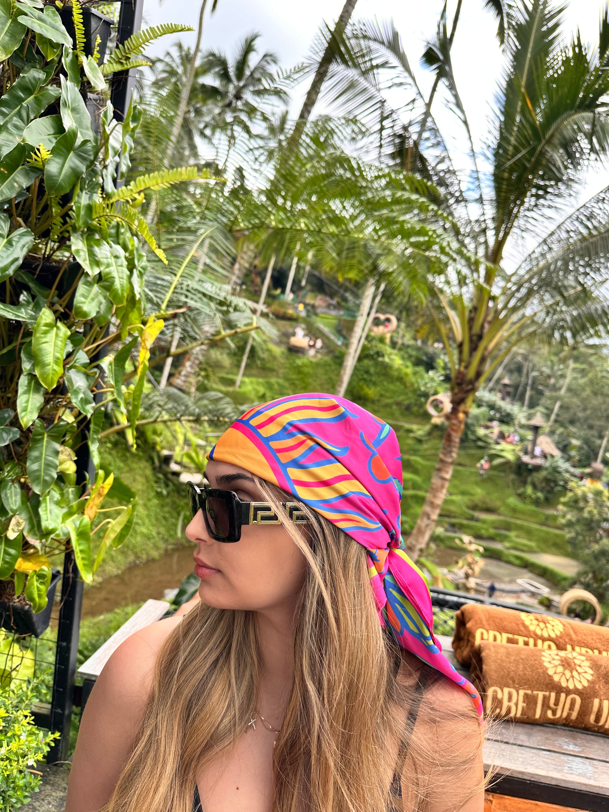 • Couleurs : Rose fuchsia, jaune soleil, turquoise et orange vif