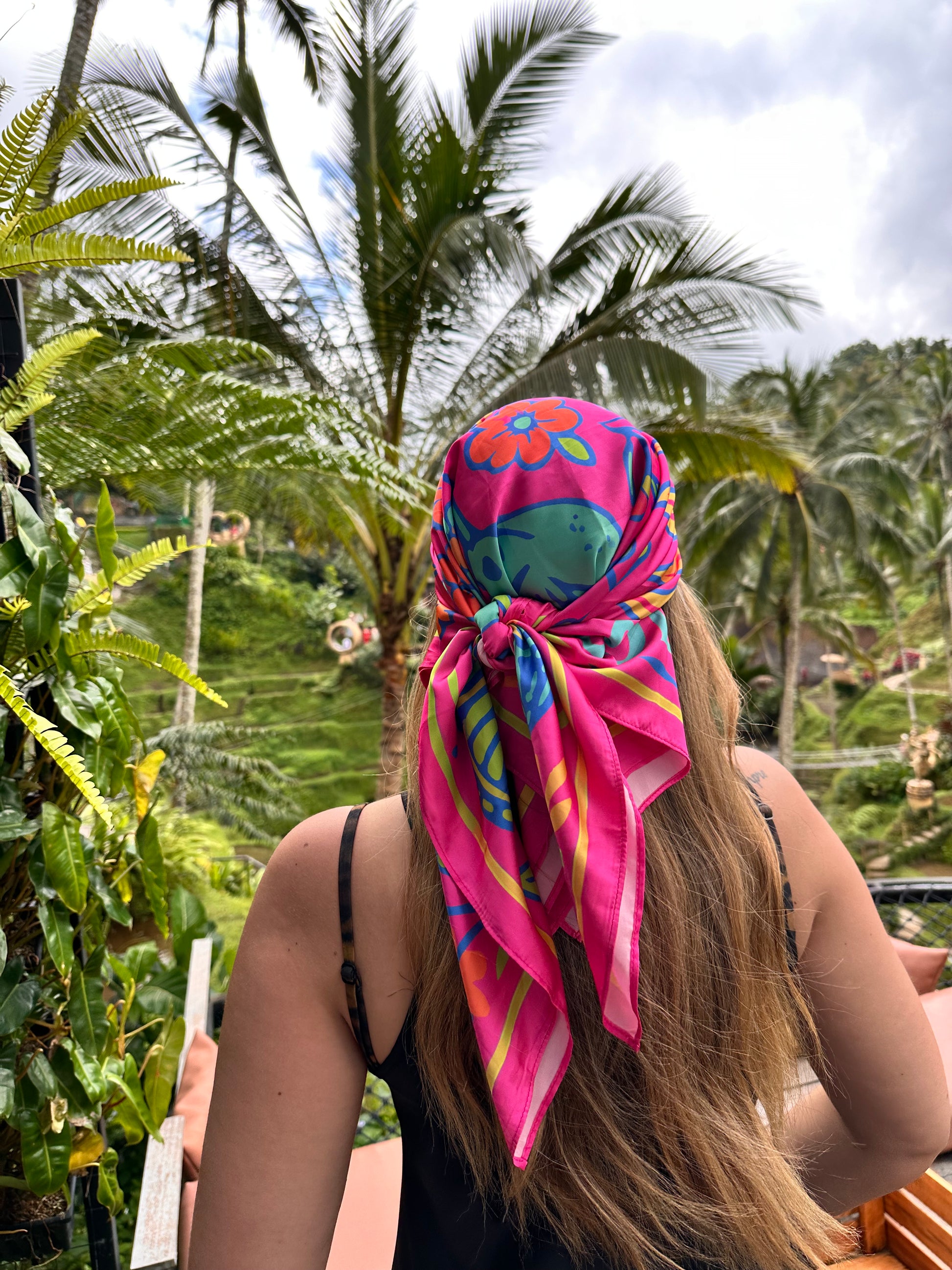 À porter comme un étendard de personnalité, autour du cou, dans les cheveux ou noué à un sac.